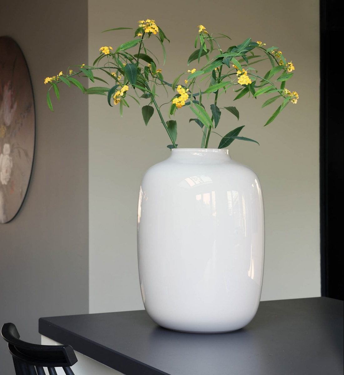 De tijdloze vormgeving maakt de vaas veelzijdig inzetbaar β prachtig met bloemen of takken, maar ook als losstaand object op een tafel, dressoir of in een open kast. De glansafwerking geeft nΓ©t dat beetje extra luxe, zonder te overheersen.
