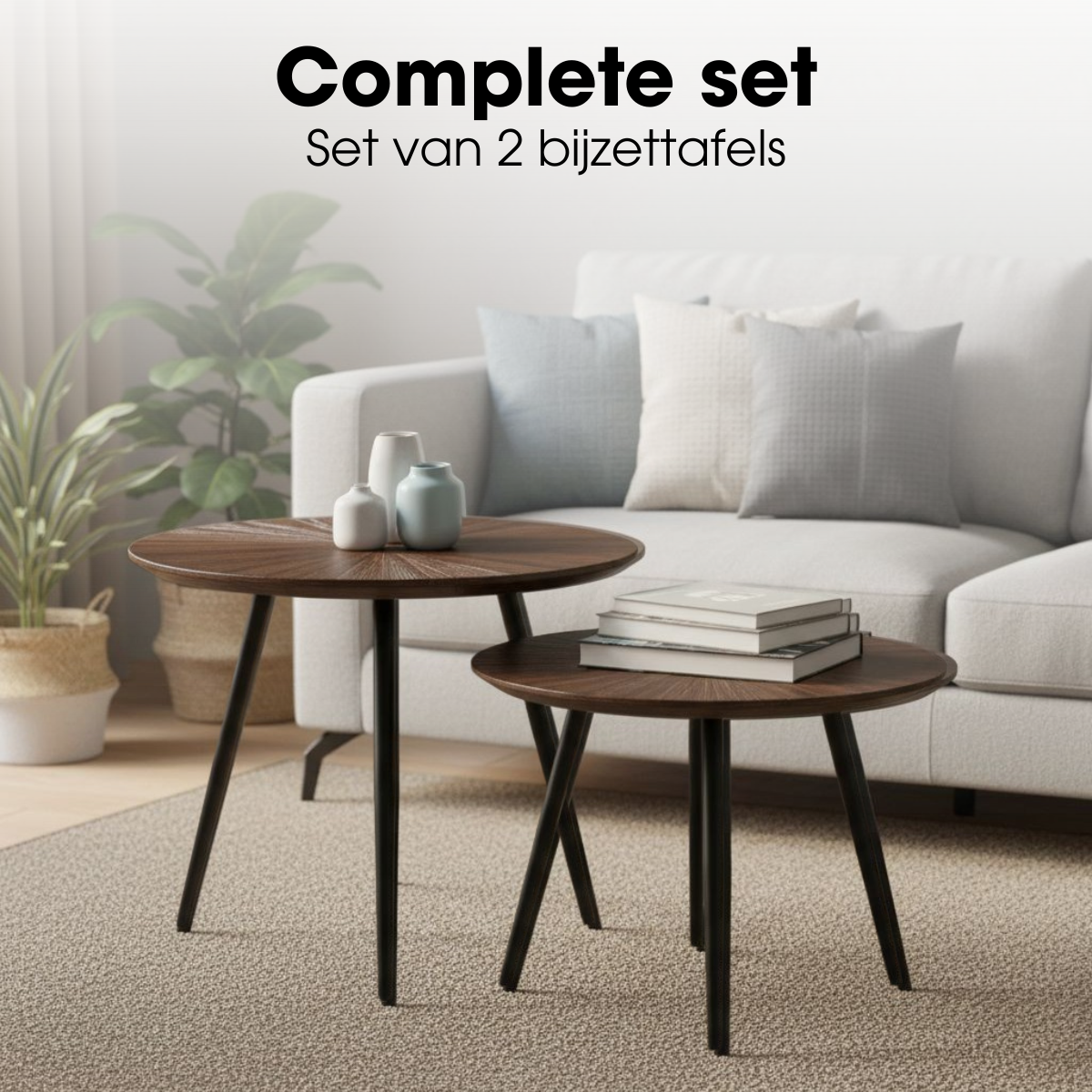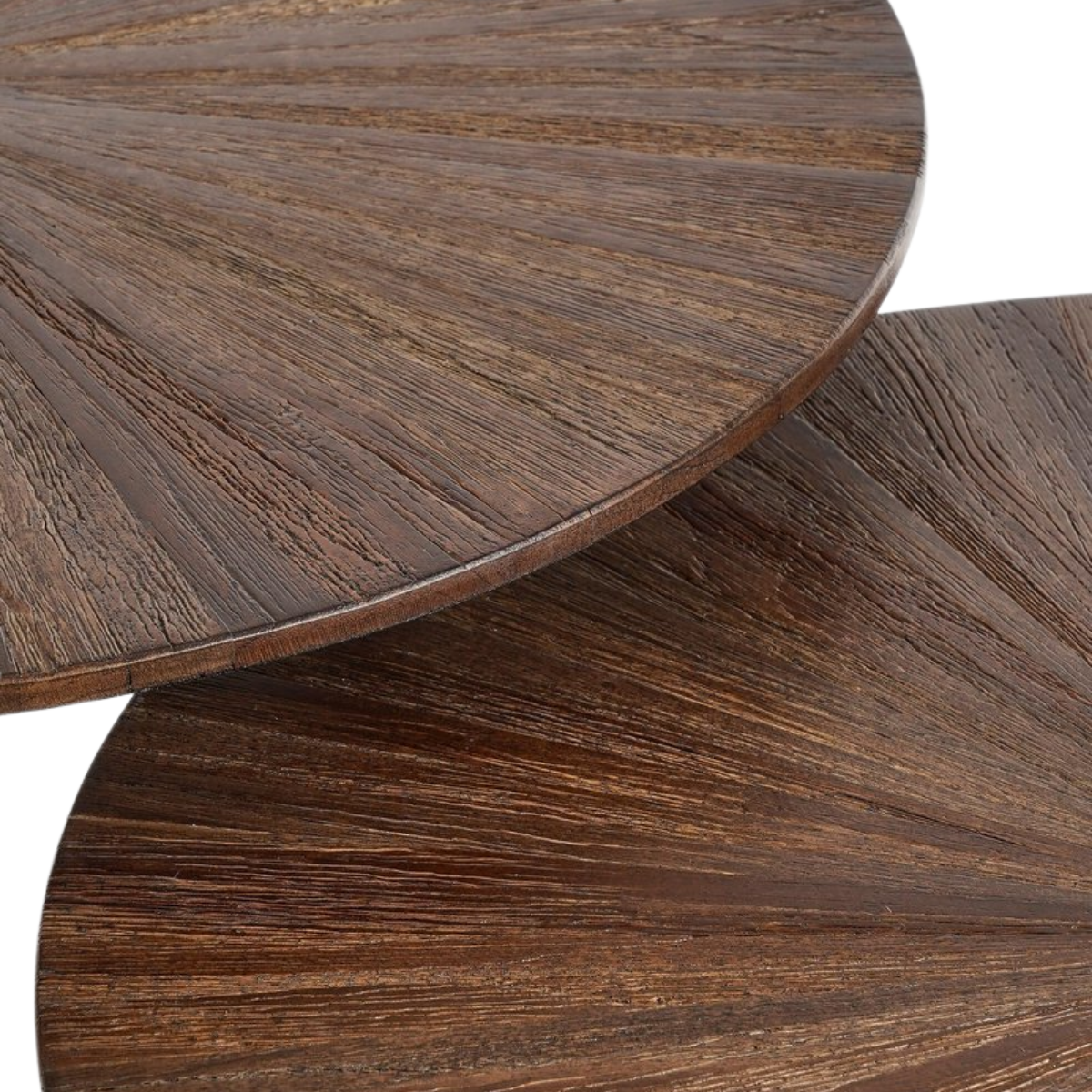 De Dane bijzettafels combineren natuurlijke charme met een praktisch en tijdloos ontwerp. Deze set van twee ronde bijzettafels is gemaakt van gerecycled hout in een warme bruine tint. De zichtbare houtstructuur en het karaktervolle oppervlak geven elke tafel een unieke, doorleefde uitstraling.