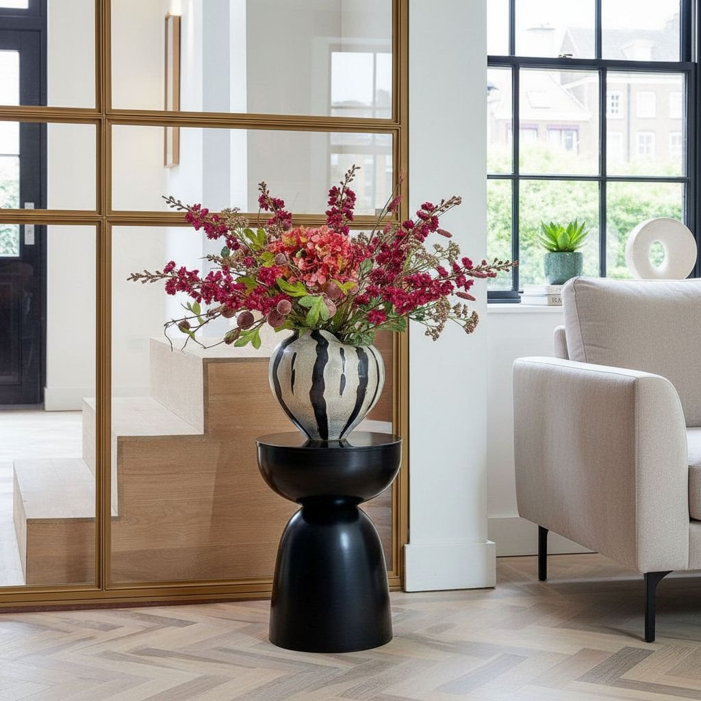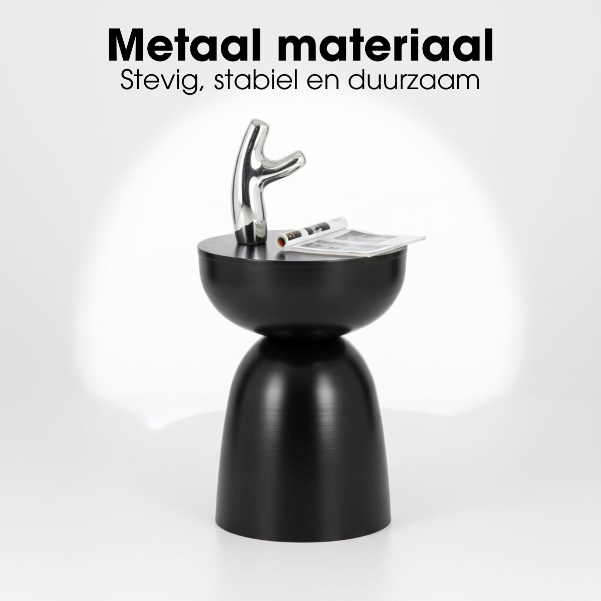 De Elliot bijzettafel in zwart geeft je interieur een krachtig en stijlvol accent. De donkere kleur en het strakke ontwerp maken deze bijzettafel perfect voor moderne en industriële woonstijlen.