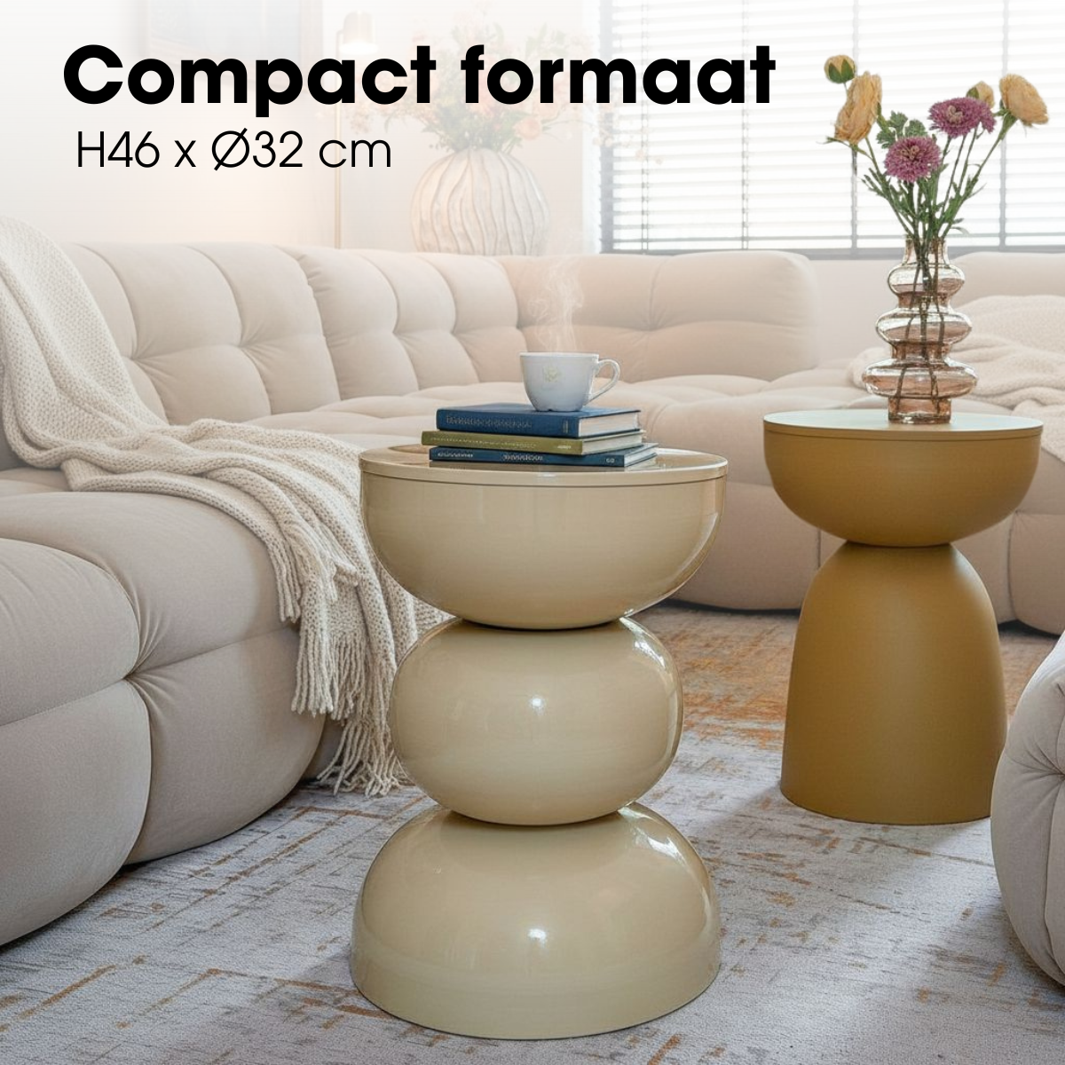 De Luna bijzettafel in beige heeft een zachte, rustige uitstraling en past perfect in een warm en gebalanceerd interieur. De neutrale tint maakt deze bijzettafel veelzijdig en eenvoudig te combineren met verschillende woonstijlen.
