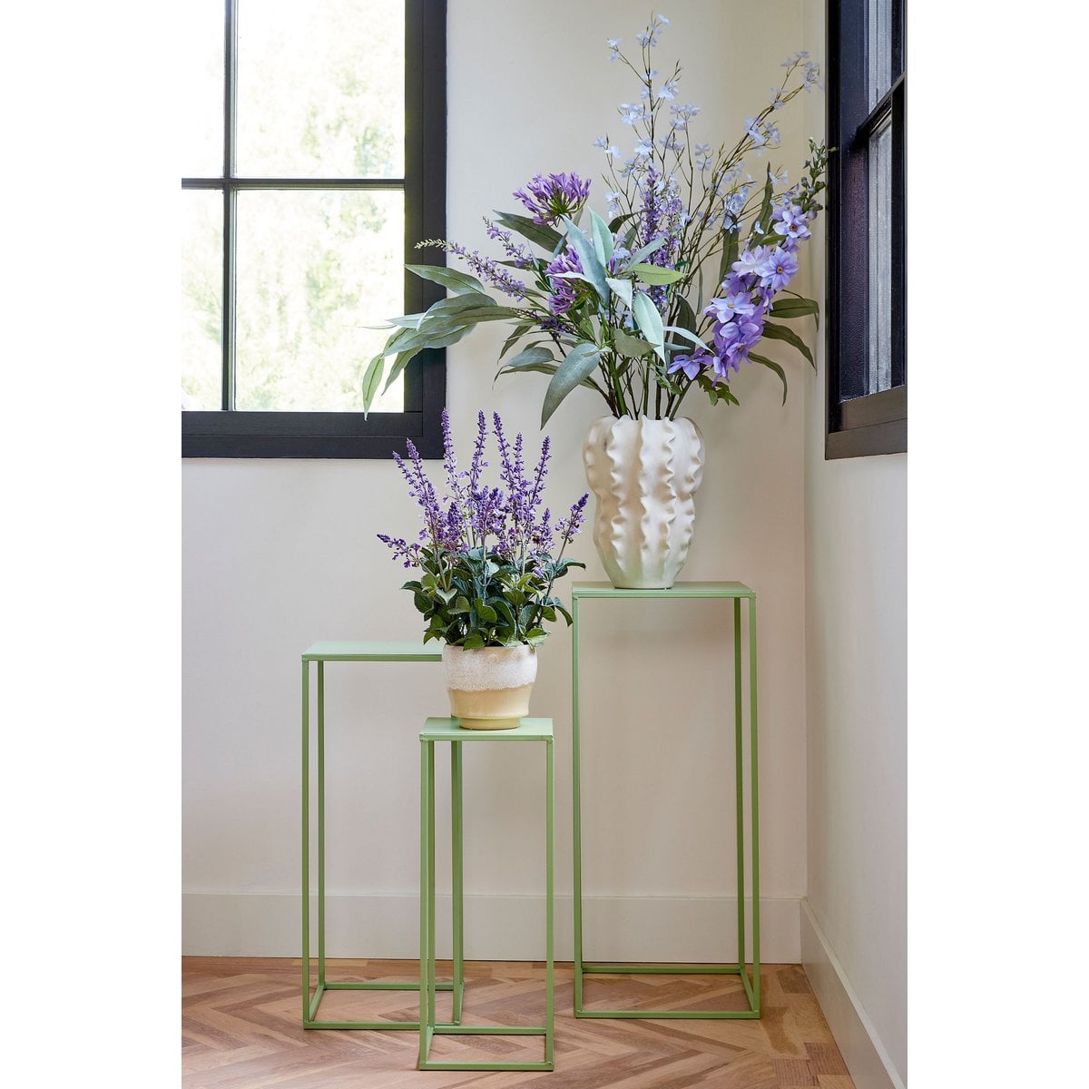 De Quinty bijzettafels vormen de perfecte basis voor sfeervolle decoraties of als stijlvolle plantentafels. Met hun slanke, hoge vorm ogen ze als elegante pilaren, ideaal voor een modern interieur. De tafels zijn gemaakt van stevig metaal en hebben een tijdloze groene afwerking, waardoor ze eenvoudig te combineren zijn met diverse woonstijlen.