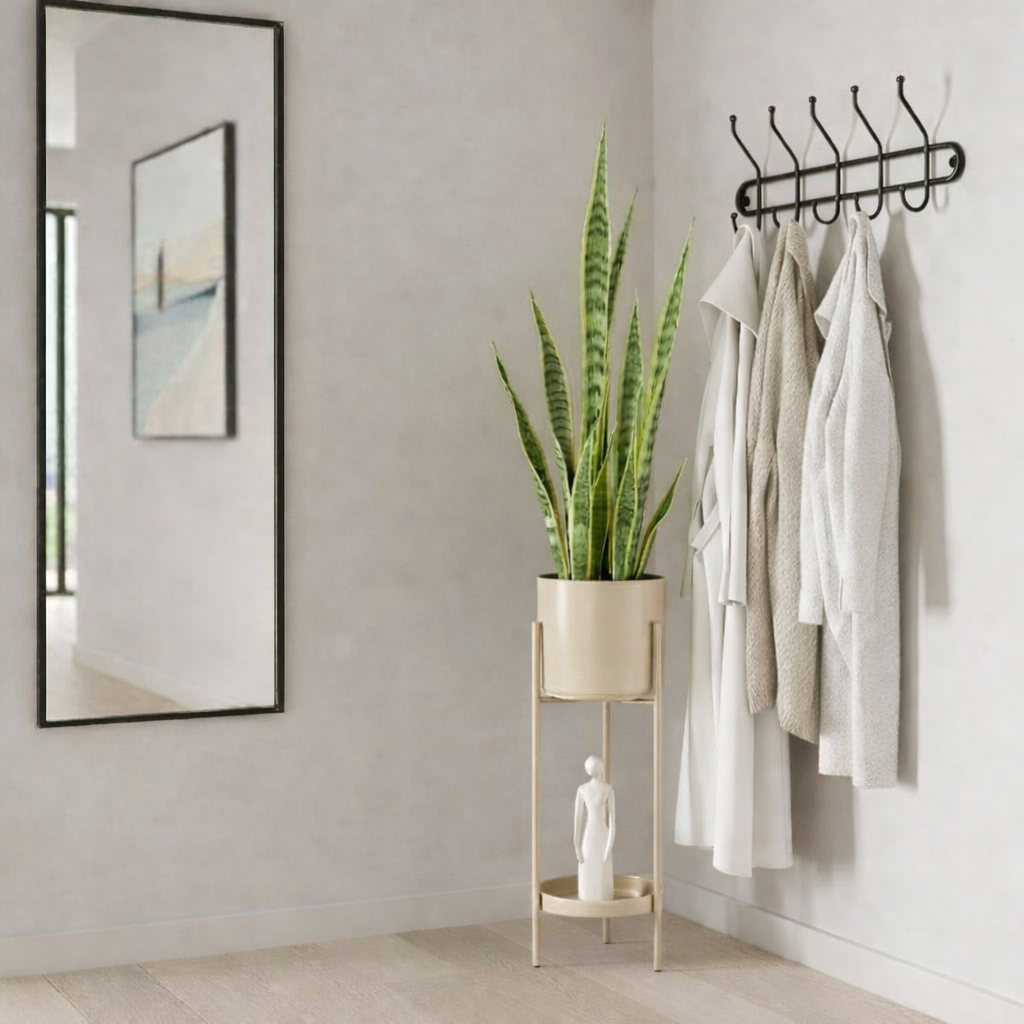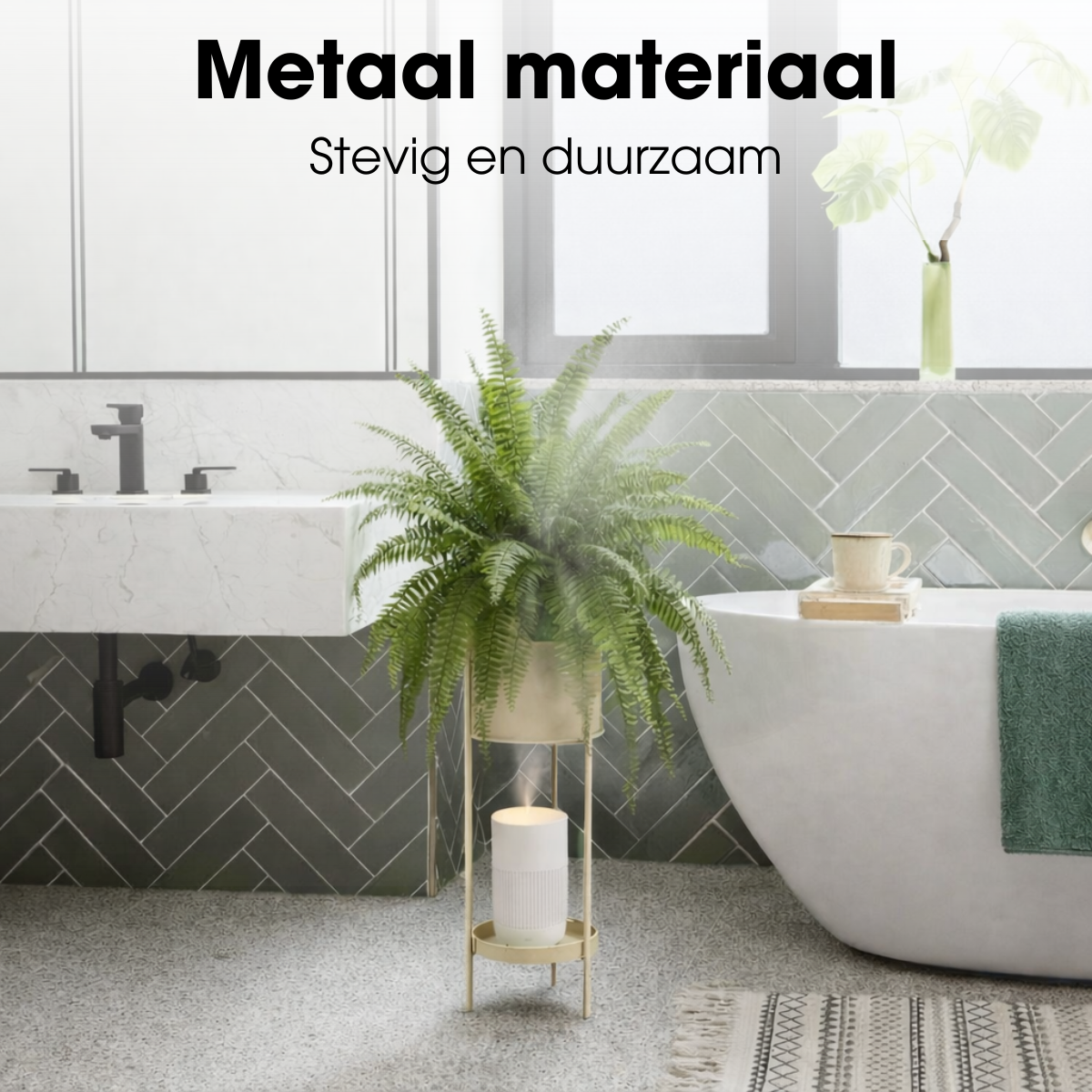 Het open ontwerp zorgt voor een luchtige uitstraling en het extra plateau onder de pot biedt ruimte voor decoratieve accenten. De Colyn bloempot op standaard is verkrijgbaar in zwart, groen, wit en bruin.