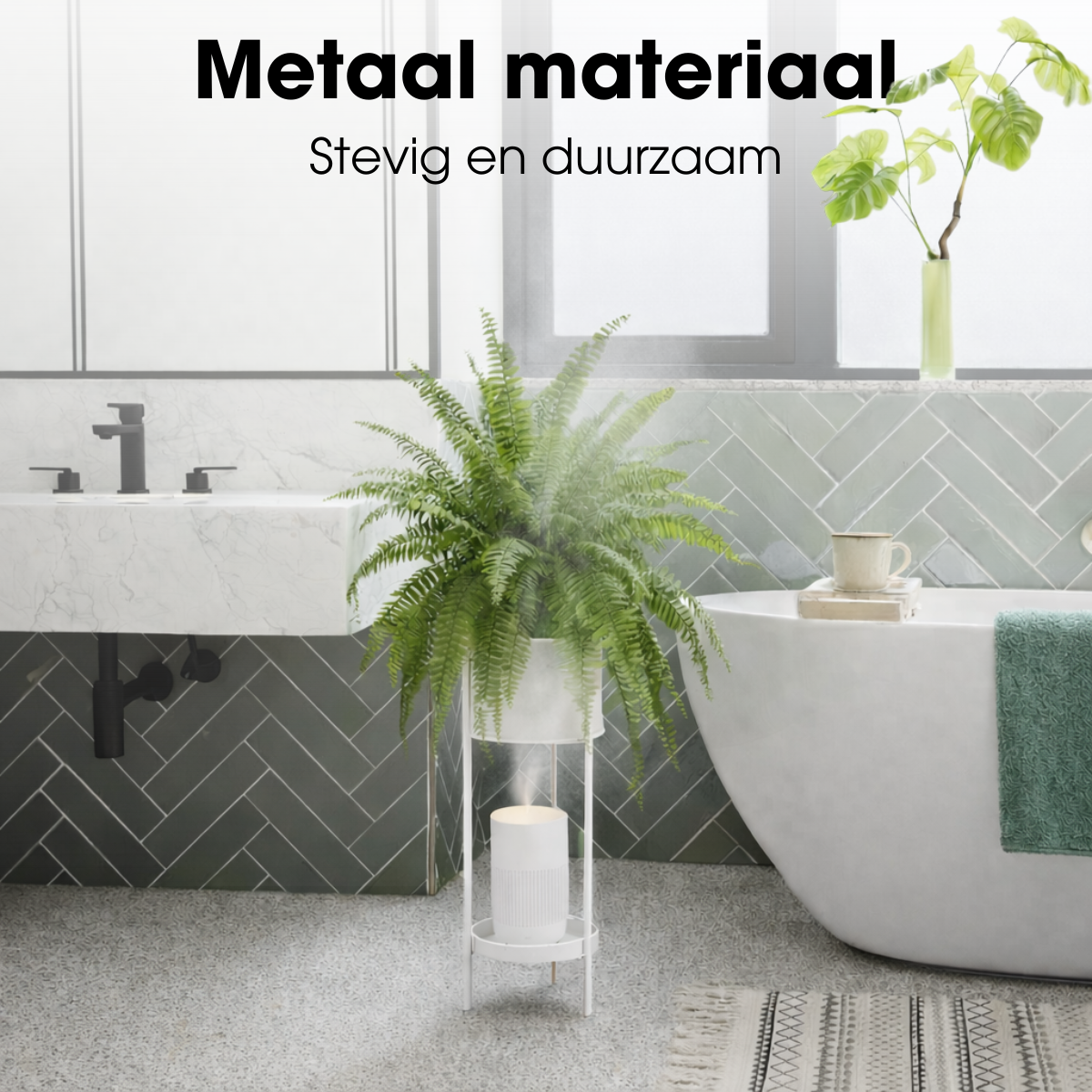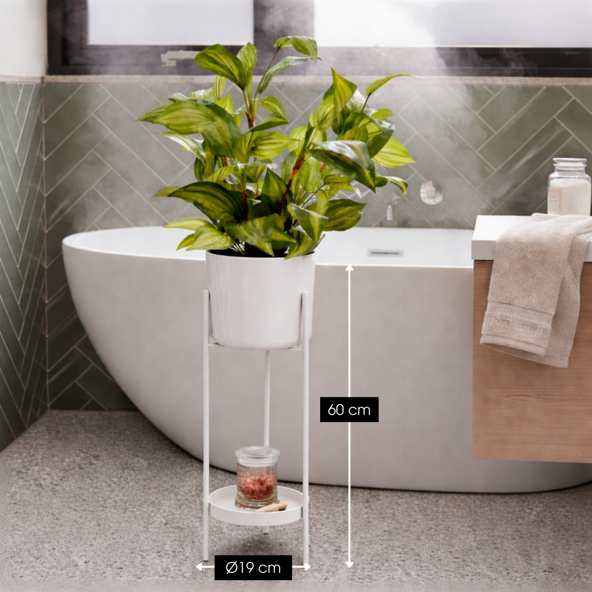 Deze bloempot op standaard is gemaakt van stevig ijzer en is waterresistant. Dankzij het extra plateau onder de pot kun je er eenvoudig een persoonlijk accent aan toevoegen. Verkrijgbaar in meerdere kleurvarianten.