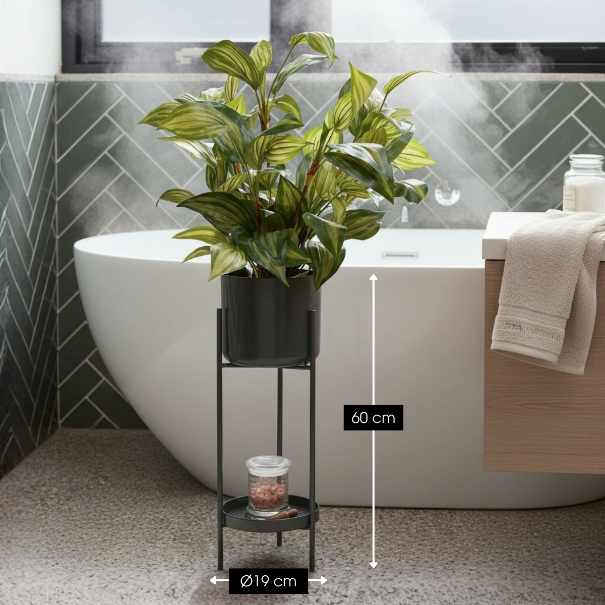 De Colyn bloempot op standaard in zwart brengt rust en stijl in je interieur. Het slanke, open ontwerp zorgt voor een ruimtelijk effect en maakt deze plantenstandaard ideaal voor zowel kleinere ruimtes als grotere woonkamers.