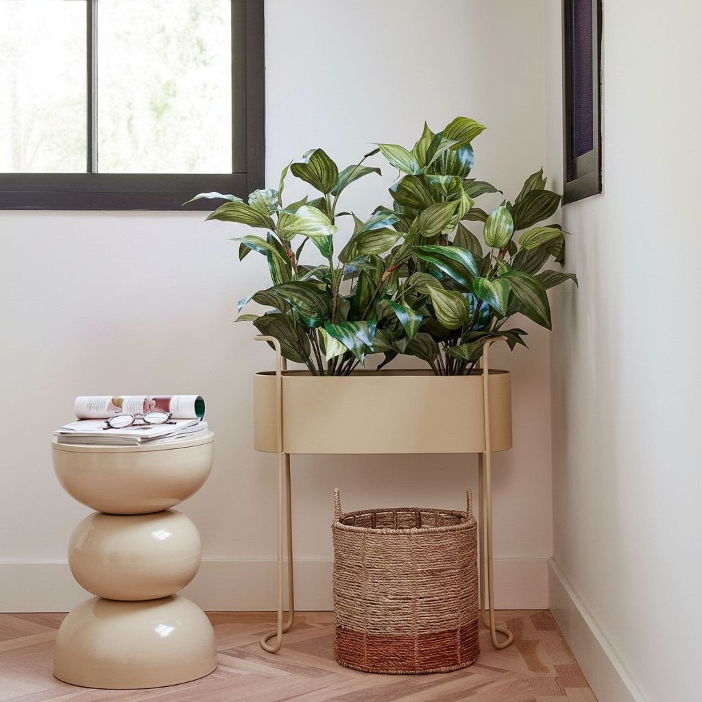 De Moritz bloempot op standaard brengt rust en stijl in je interieur. De zachte beige kleur zorgt voor een warme, natuurlijke uitstraling en past perfect binnen lichte en Scandinavische woonstijlen. Dankzij het hoge ontwerp vallen je planten extra mooi op en geef je eenvoudig meer leven aan een lege hoek of wand.