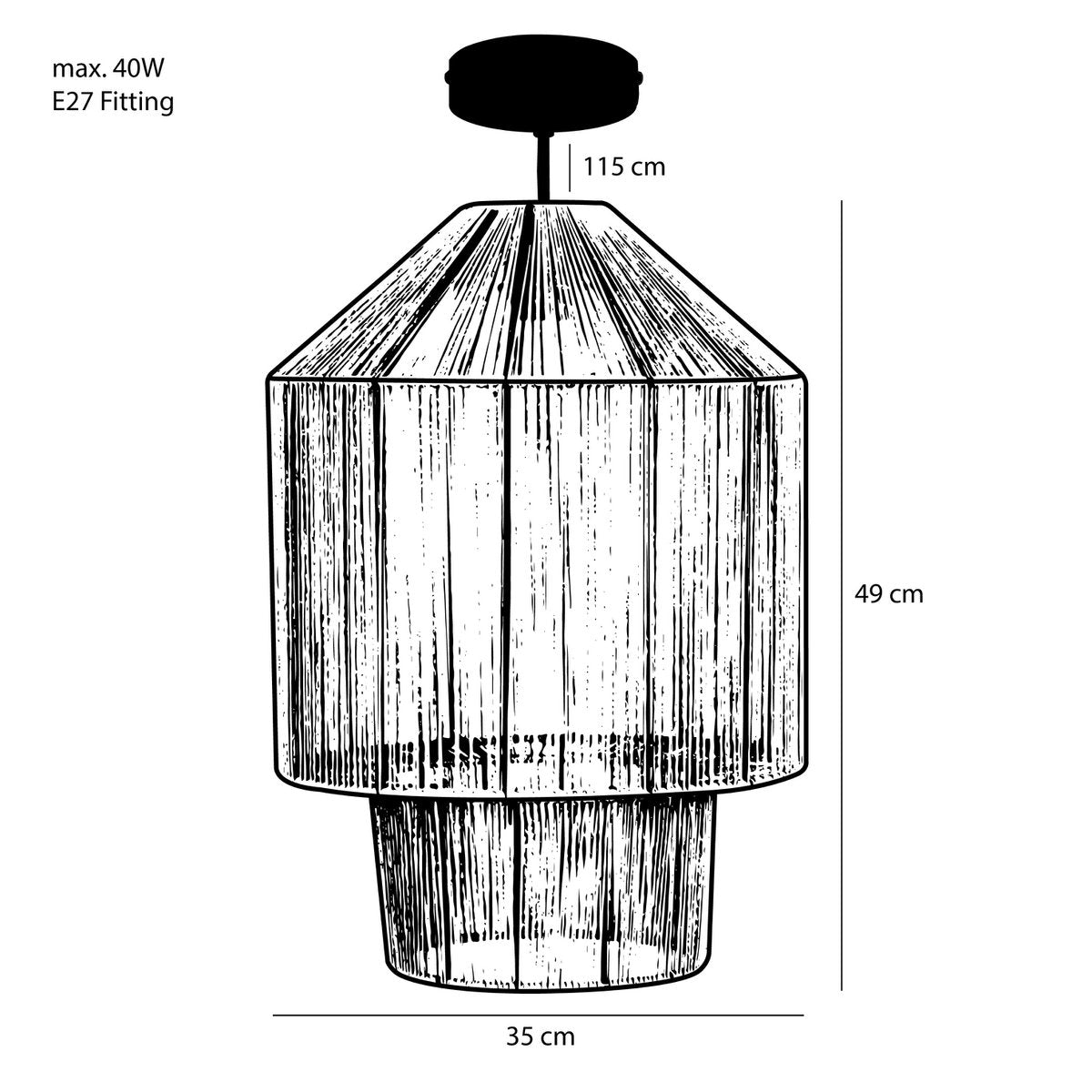 Met een hoogte van 49 cm en een diameter van 35 cm heeft deze variant een elegante, slanke uitstraling – ideaal voor boven een eettafel, in de hal of als eyecatcher boven een bijzettafeltje. De kabellengte van 130 cm geeft je voldoende vrijheid in de ophanging.