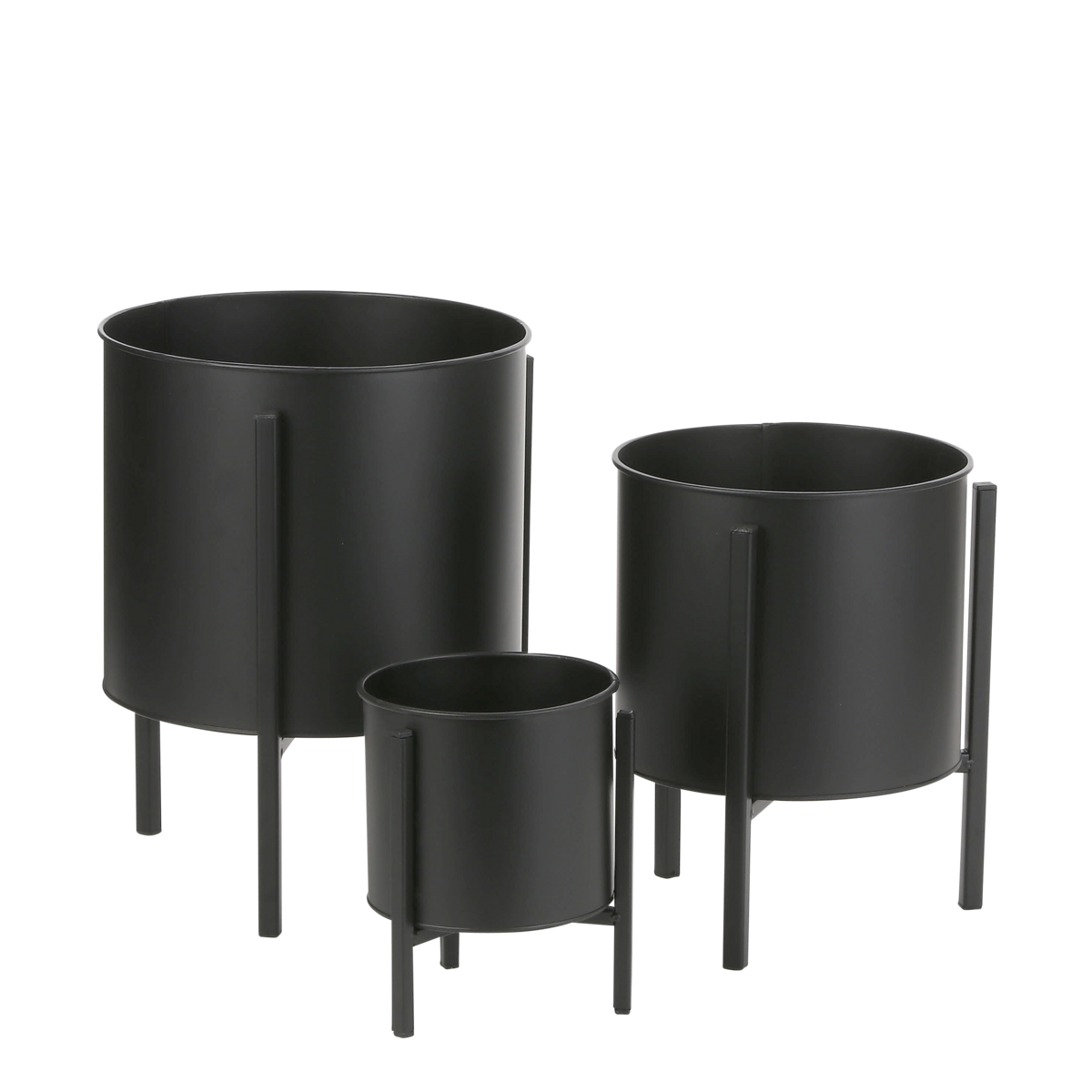 Laat jouw favoriete planten extra mooi uitkomen met de Jessy bloempotten op standaard. Deze stijlvolle set van drie combineert functionaliteit met een strak, modern design. Zowel de bloempotten als de standaards zijn uitgevoerd in zwart metaal, wat zorgt voor een rustige en tijdloze uitstraling.