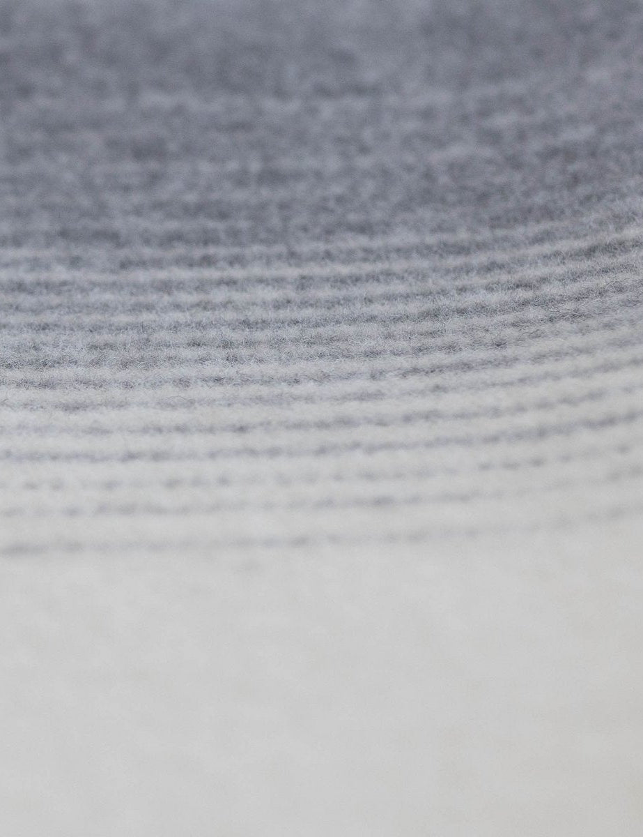 De mistgrijze kleur vervaagt vloeiend in helder wit, wat een kalme en serene uitstraling creëert. Perfect om stijlvol over een bank te draperen, aan het voeteneind van je bed te leggen of om jezelf in te wikkelen tijdens frisse avonden.