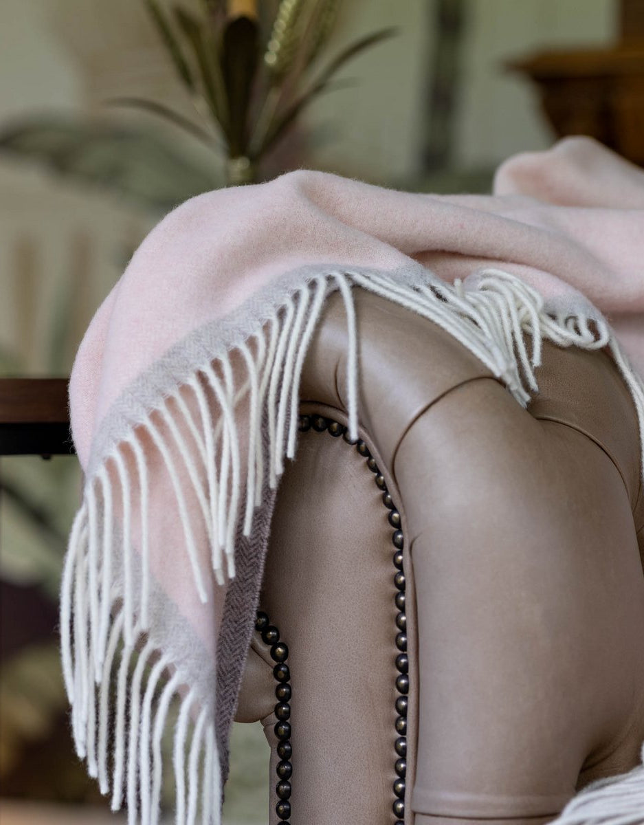 Voeg een vleugje zachtheid toe aan je interieur met de Milano Rosa Orlo. Deze elegante deken in een verfijnde oudroze tint is vervaardigd uit een hoogwaardige mix van merinowol en kasjmier, wat resulteert in een fluweelzacht, ademend en warm textiel.