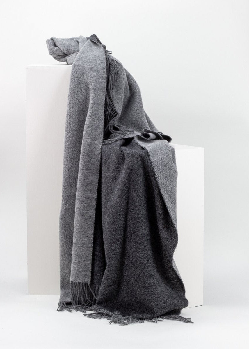 Breng een gevoel van verfijning in huis met de Onyx plaid, een luxe dubbelzijdige deken geweven van 100% Nieuw-Zeelandse wol. Deze hoogwaardige wol staat bekend om zijn zachtheid, warmte en natuurlijke ademend vermogen, én wordt geproduceerd volgens hoge dierenwelzijns- en milieunormen.