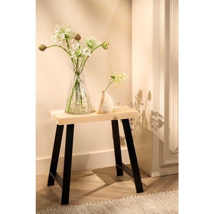 Op zoek naar een compact krukje met karakter? Het Plano krukje is een stijlvolle aanvulling voor elk interieur. Gemaakt van natuurlijk dennenhout en afgewerkt met een zwart metalen frame, straalt dit krukje een stoere, industriële sfeer uit.
