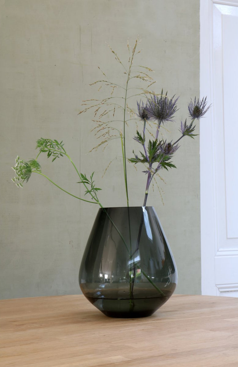 De Tasman vaas in Grijs is een stijlvolle, mondgeblazen vaas gemaakt van hoogwaardig glas. Met zijn zachte, organische vorm en subtiele kleur is deze vaas een tijdloze aanvulling op elk interieur. Dankzij het ambachtelijke proces heeft elke vaas een geslepen rand en unieke details, zoals kleine luchtbelletjes of subtiele strepen in het glas – imperfecties die juist het vakmanschap onderstrepen.