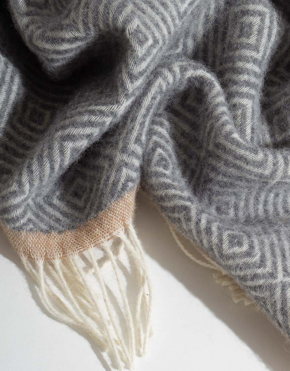 De Venezia-sprei in klassiek grijs ademt rust, eenvoud en verfijning. Gemaakt van 100% zuivere Nieuw-Zeelandse wol, biedt deze plaid een luxueus gevoel van comfort en warmte, met een subtiele elegantie die in elk interieur tot zijn recht komt.
